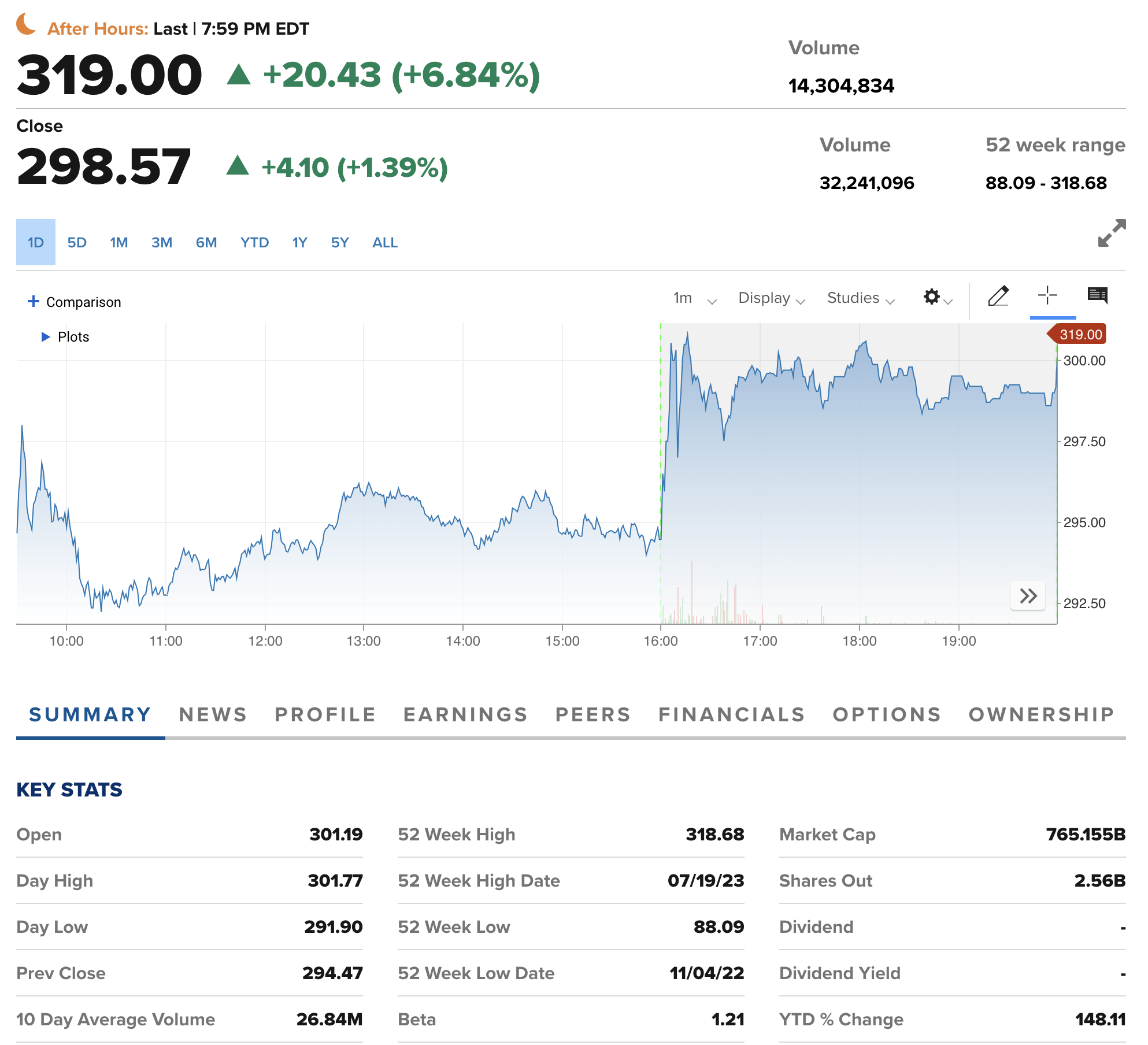 - 매출액: 320억달러, 11% 성장,주가: 7% 급등,