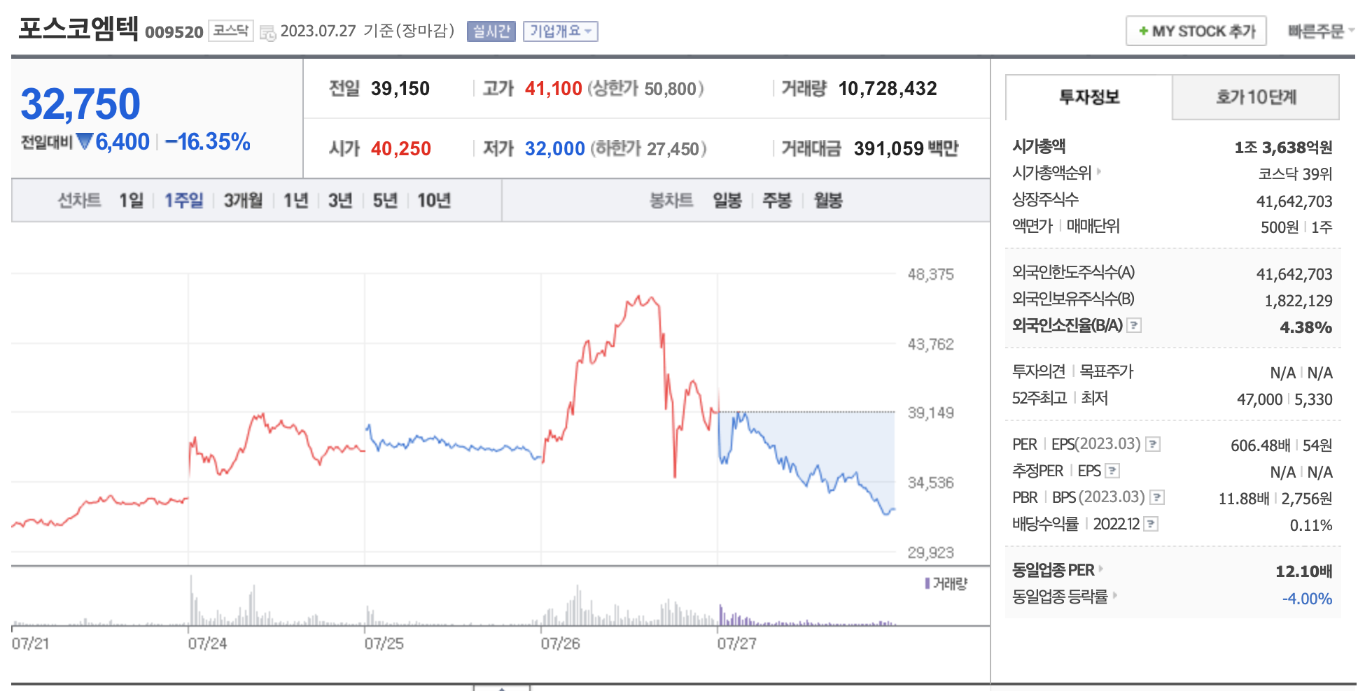 2차전지주가 30% 최고가 까지 오르던 에코프로비엠과 포스코인터네셔널 등 끝없이 오르던 와중에 지난 7월 26일 오후장에 들어서면서 부터 갑자기 20%대까지 폭락하기 시작했습니다. 다음날인 27일 역시 포스코인터내셔널은 -21.74%, 포스코퓨처엠은 -13.21%, 에코프로 -19.79%, 에코프로비엠 -17.25% 하락 장마감했습니다.