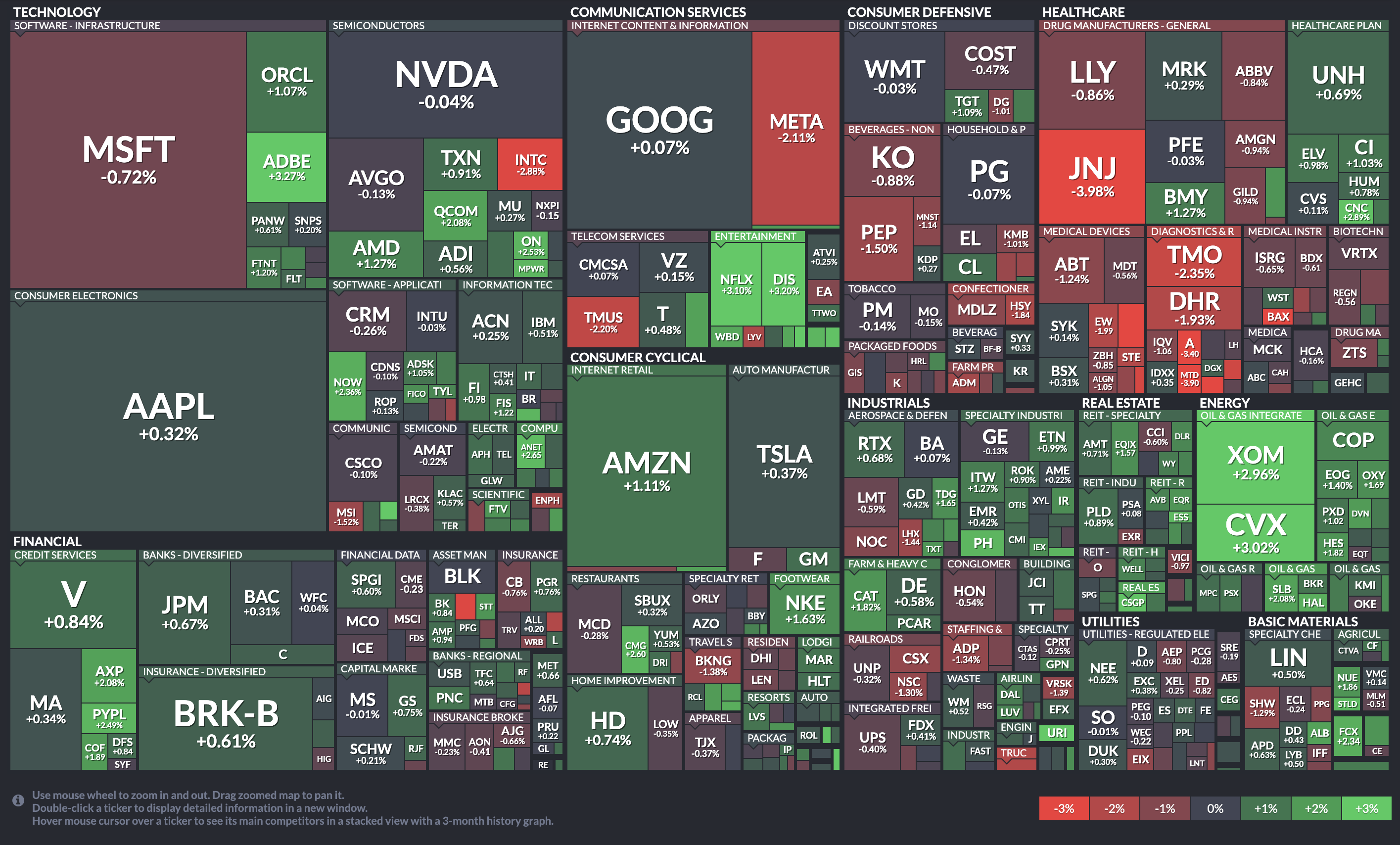 기술주가 엇갈렸다. 애플 0.32%, 아마존 1.11%, 넷플릭스 3.1%, 알파벳 0.11% 상승했으나 마이크로소프트 0.72%, 메타 2.11%, 엔비디아 0.04% 하락 마감했다.