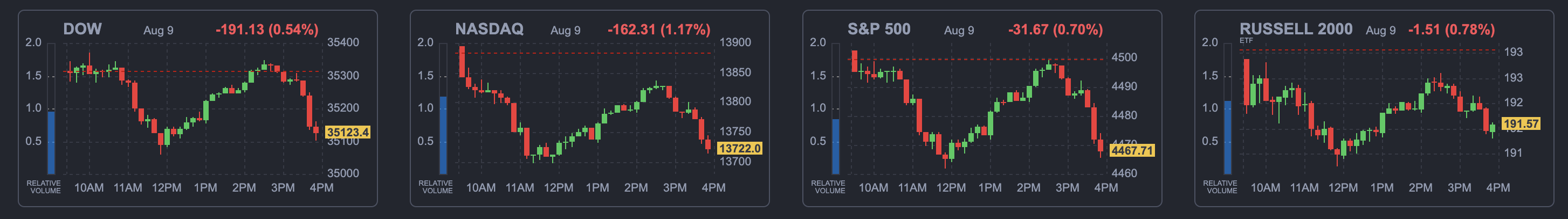 7월 소비자물가지수(CPI) 발표를 하루 앞두고 뉴욕 증시가 하락했다. 중국의 물가 하락과 관련된 경제 불안과 투자자들의 신중한 행보가 증시에 영향을 미쳤다. 다우존스는 0.54% 하락한 3만5123.36에 마감했다. 이러한 상황에서 연준의 금리 인상에 대한 관심이 커지고 있다. 7월 CPI는 전년대비 3.3%로 인플레이션이 다소 증가할 전망이다. 중국의 디플레이션은 세계 경제에 둔화 요인이 될 수 있다는 우려가 있다. 주식시장은 현재 경계심을 보이고 있으며, 미래에 대한 불확실성이 높아 상승 또는 하락의 경향을 예측하기 어렵다.