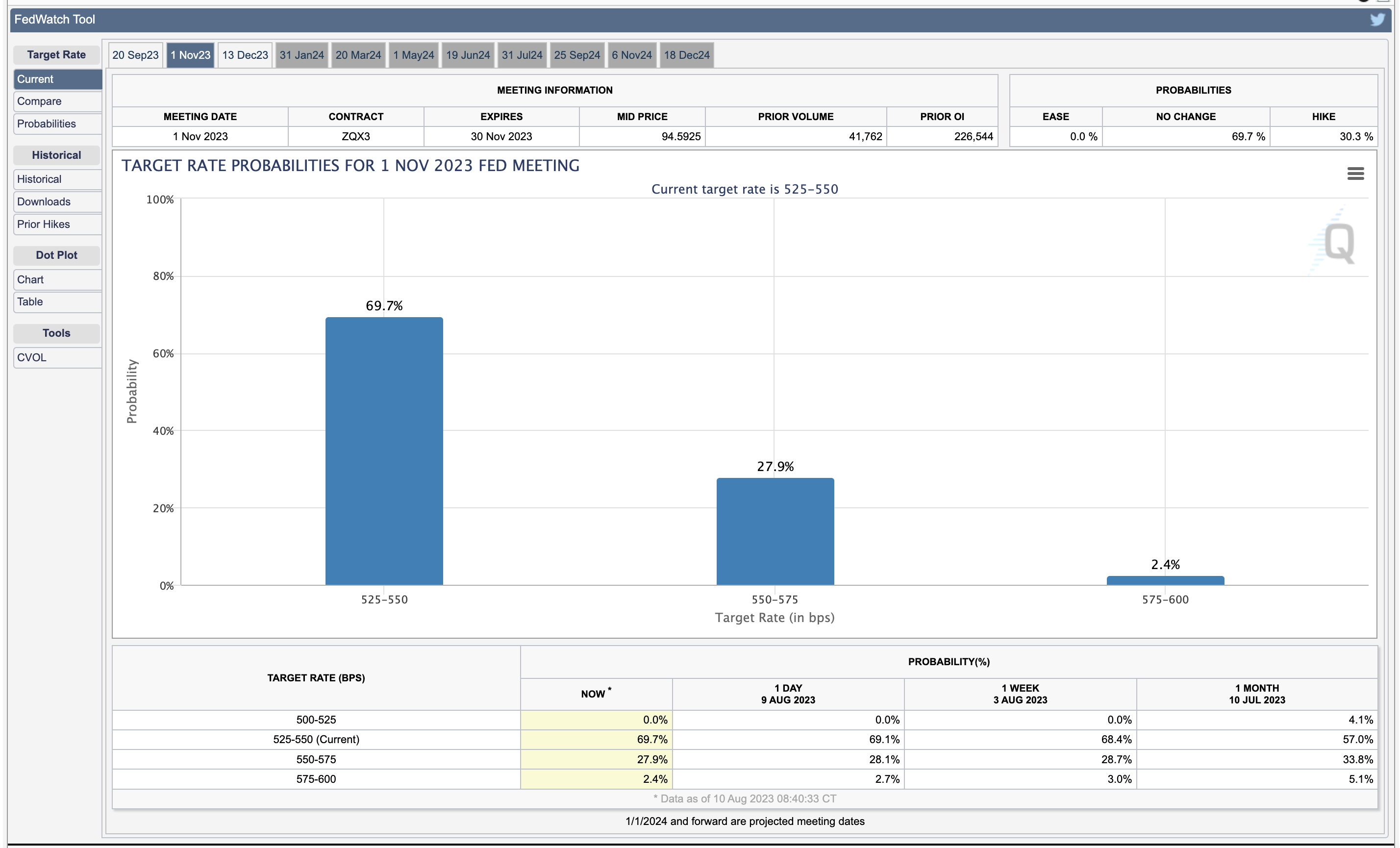 이날 나온 7월 생산자물가지수(PPI)는 전년 대비 0.8% 올랐고 전월 대비 0.3% 상승했다. 전월 대비 0.2% 상승할 거라는 이코노미스트들의 예상치를 웃돌면서, 인플레이션 둔화 추세를 좀 더 지켜봐야 한다는 분석에 힘이 실린다. 러시아의 흑해곡물협정 탈퇴로 곡물가 상승 영향이 반영됐다는 의견도 있고 최근 유가가 연중 최고치를 경신하기도 했다.