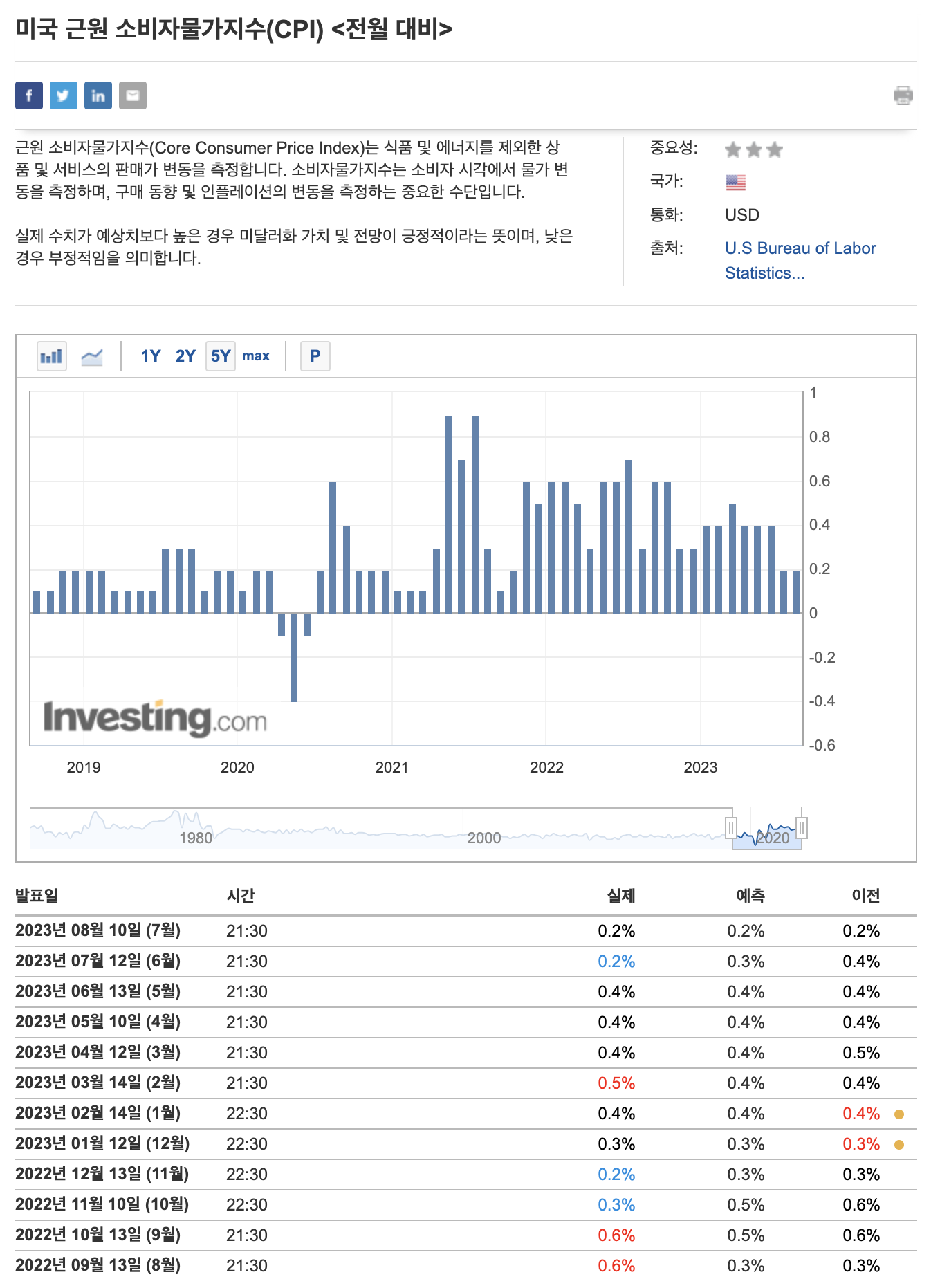 - CPI 8월(7월) : 0.2% --> 0.2%(예측 0.2%)