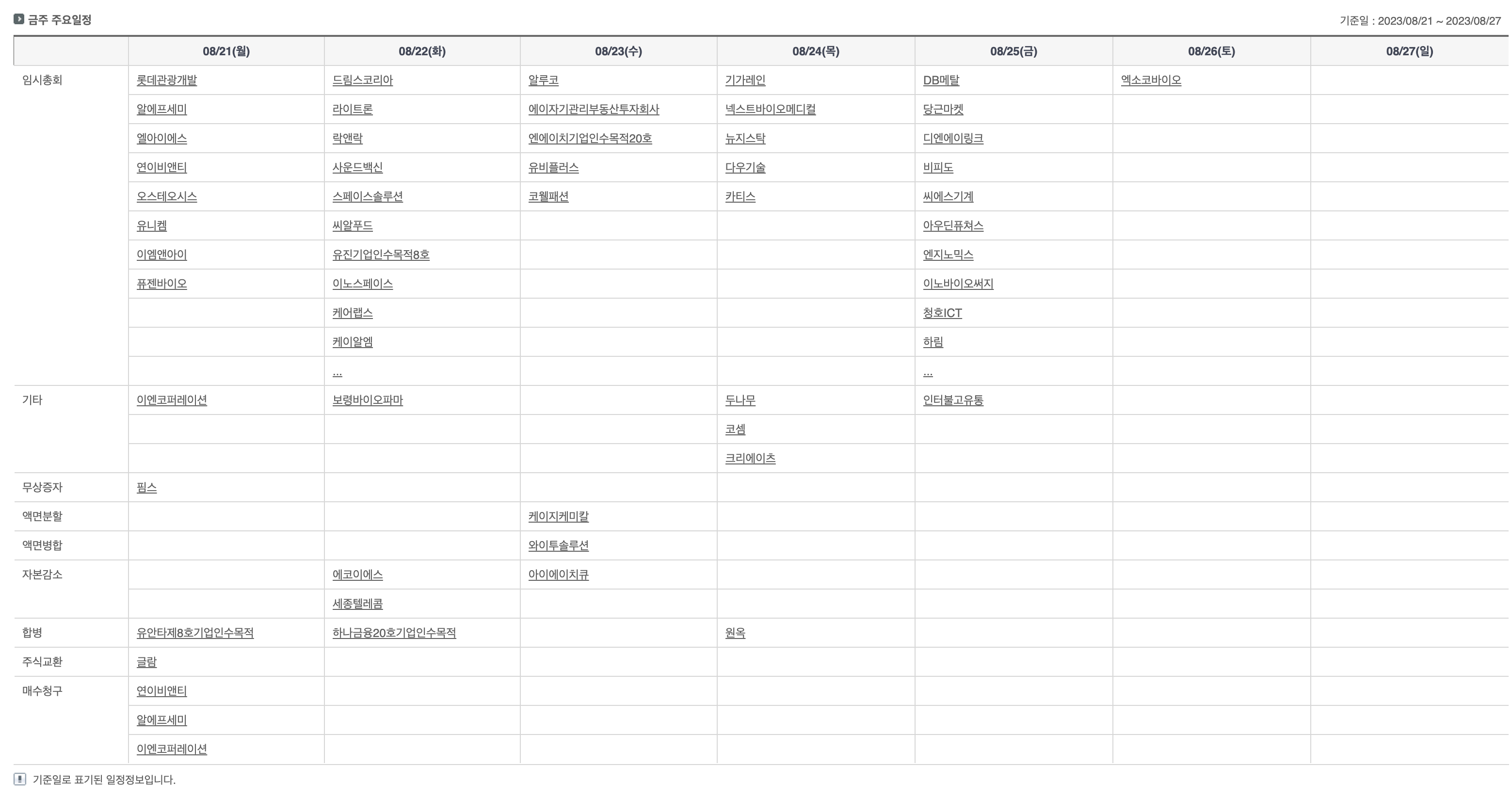 | 8월 네째주 금주 주요일정 (2023.8.21~25) | |
