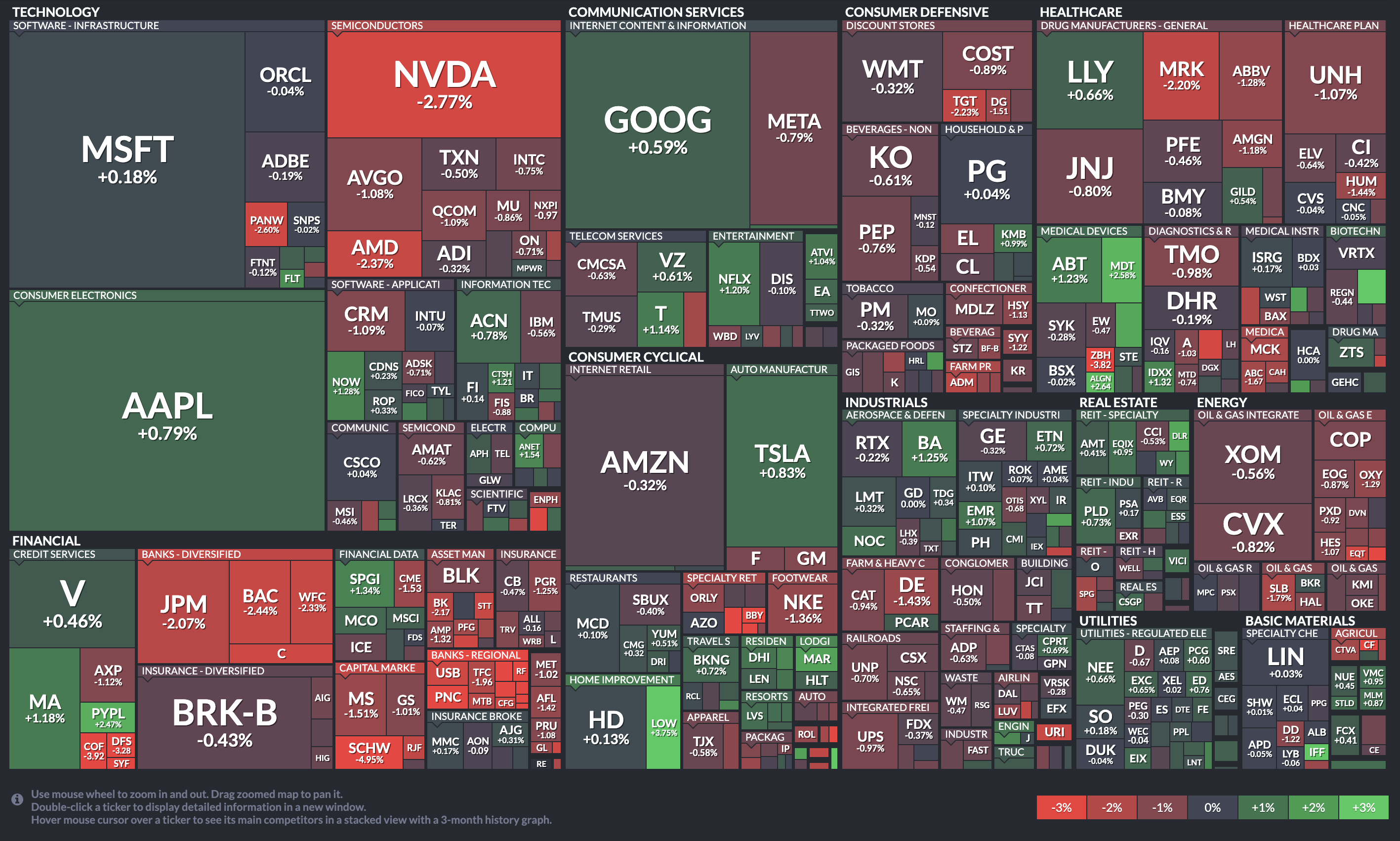 기술주가 엇갈렸다. 애플 0.79%, 마이크로소프트 0.18%, 알파벳 0.55%, 넷플릭스 1.2% 상승했으나 엔비디아 2.77%, AMD 2.37%, 인텔 0.75%, 아마존 0.32%, 메타 0.79% 하락했다.