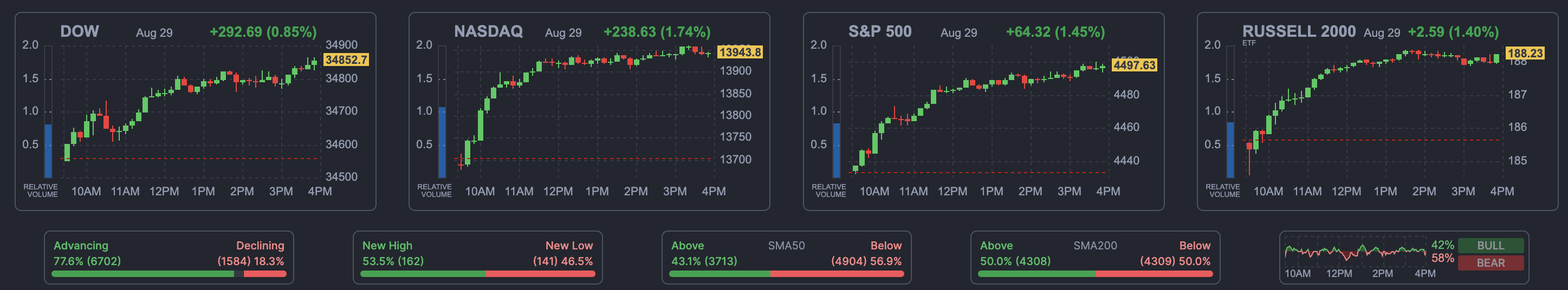 기술주가 상승했다. 애플 2.18%, 마이크로소프트 1.46%, 아마존 1.33%, 엔비디아 4.16%, 메타 2.66%, 알파벳 2.72%, 넷플릭스 2.85% 상승 마감했다. 애플은 오는 9월 12일에 '애플 이벤트'를 개최할 것이라고 발표해 시장은 이날 애플의 신형 아이폰이 공개될 것으로 예상하고 있다.