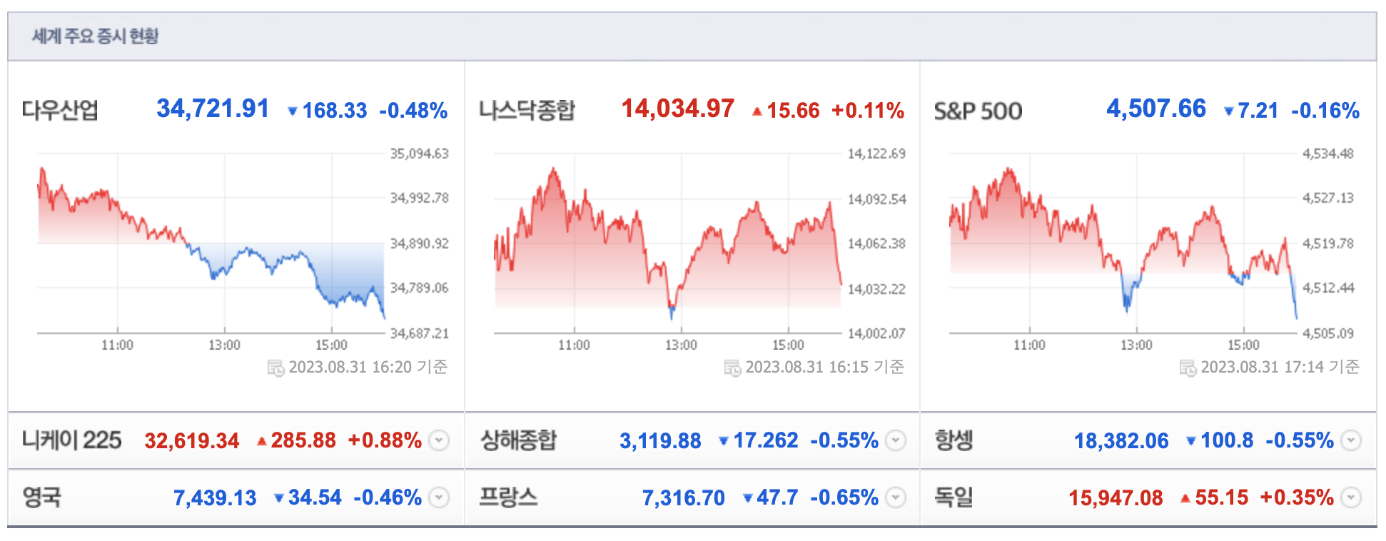 💠 뉴욕증시, PCE 해석 엇갈리며 혼조 마감…아마존 2.2%↑ [날짜: 20230901]