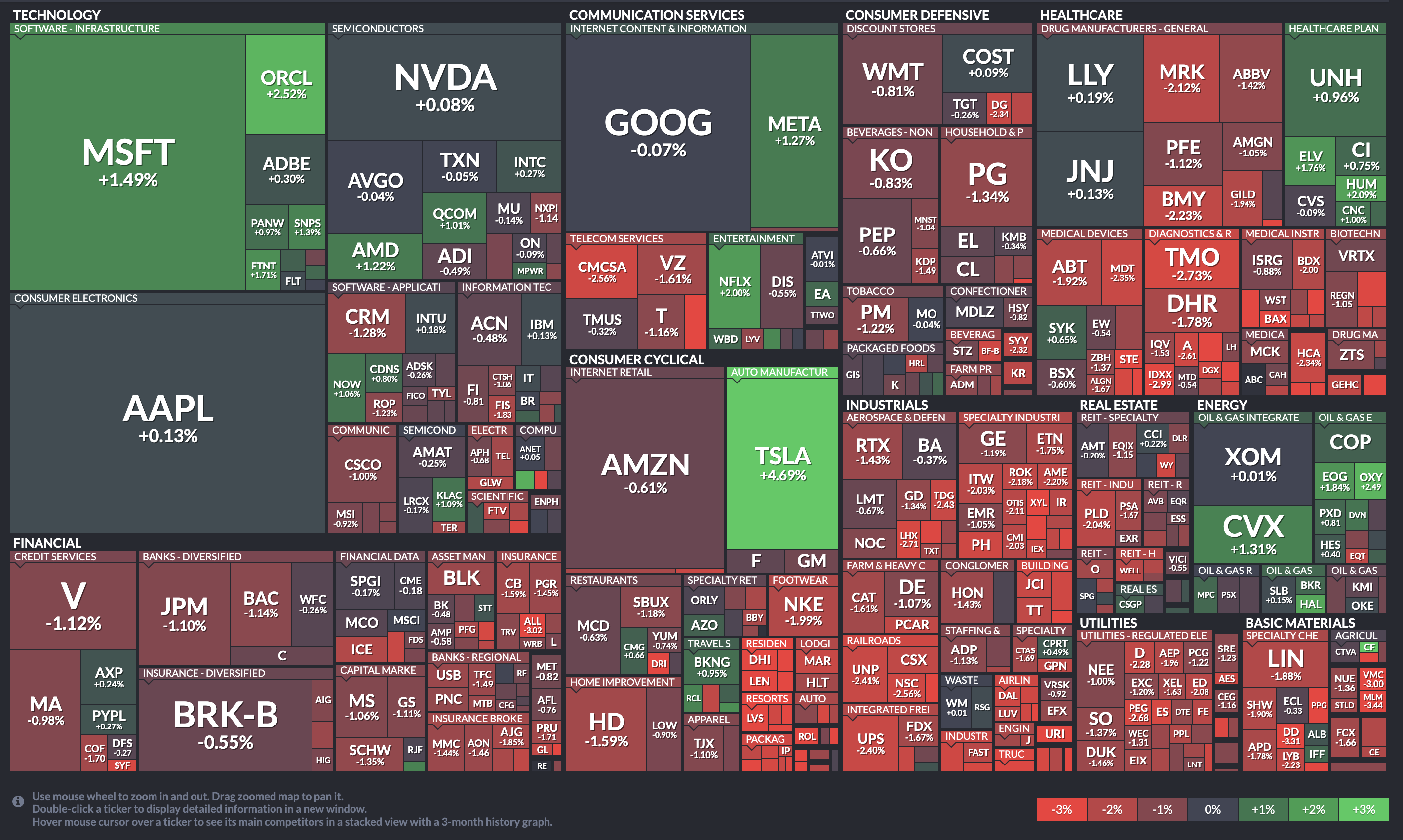 기술주가 상승했다. 애플 0.13%, 엔비디아 0.08%, 마이크로소프트 1.49%, 알파벳 0.08%, 메타 1.27%, 넷플릭스 2% 상승 마감했다. 아마존은 0.62% 하락했다.