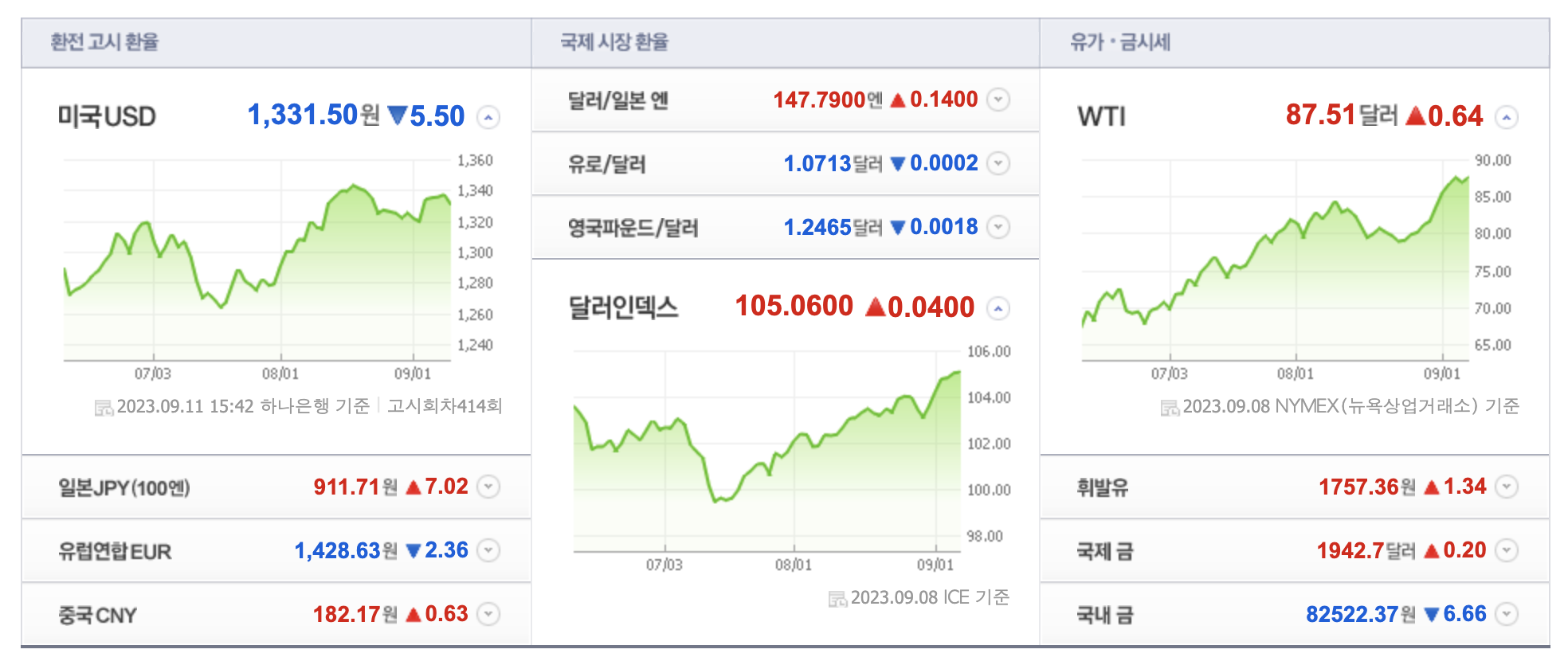 - 원·달러 환율의 1330원대 박스권 유지
