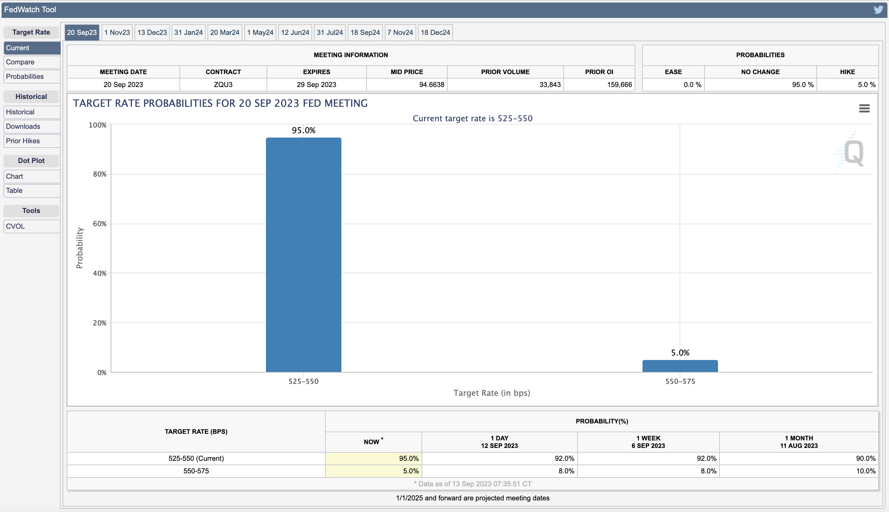 뉴욕증시는 기술주들의 부진과 유가 부담으로 인해 하락했다. 다우존스30산업평균지수는 34,645.99로 0.05% 하락하였고, S&P500지수는 4,461.9로 0.57% 하락하였다. 나스닥지수는 13,773.61로 1.04% 하락하였다. 애플의 아이폰 출시 이벤트와 오라클의 실적 발표에도 불구하고, 주가는 하락세를 보였다. 클라우드 관련 기업들인 아마존, 알파벳, 마이크로소프트의 주가도 하락했다. 주식시장은 현재 기술주들의 부진과 유가 상승에 대한 부담으로 인해 약세를 보일 것으로 예상된다. 다음날 발표될 소비자물가지수(CPI)와 미국의 소비심리, 기대인플레이션 등을 주시해야 할 필요가 있다. 연방기금(FF) 금리 선물 시장에서는 9월 회의에서 금리를 동결할 가능성이 93%로 예상되고 있다. 경제지표와 금리 변동에 주의해야 할 시기이다.