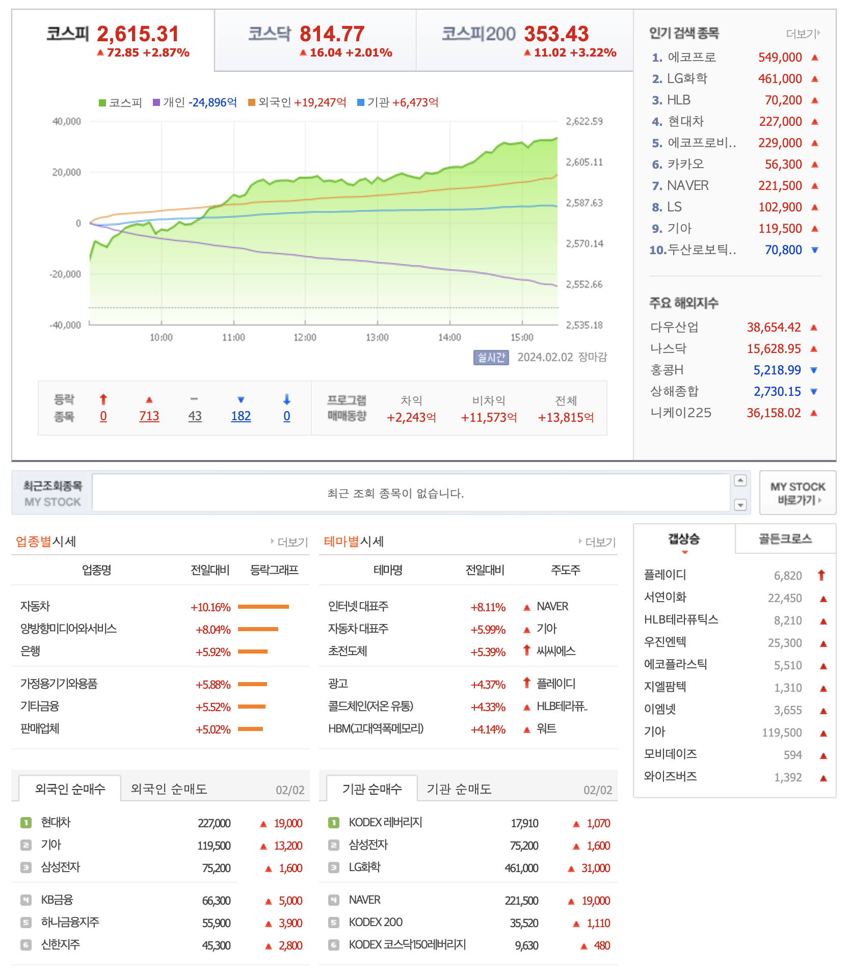 💠 주식시장 상승 또는 하락 예측, 미국과 한국 주식시장의 동향 [날짜: 20240205]