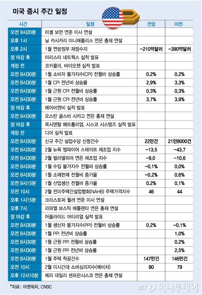 - 뉴욕 증시, 1월 소비자·생산자물가지수 발표에 주목