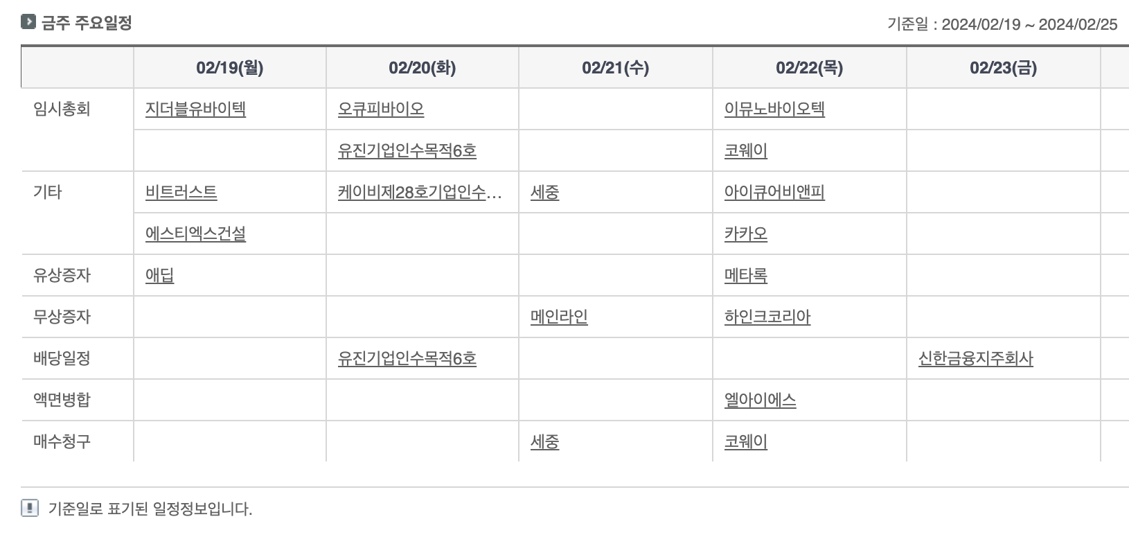| 주요 경제지표 및 증시일정 [2024년 2월 19(월) ~ 23(금)] |
