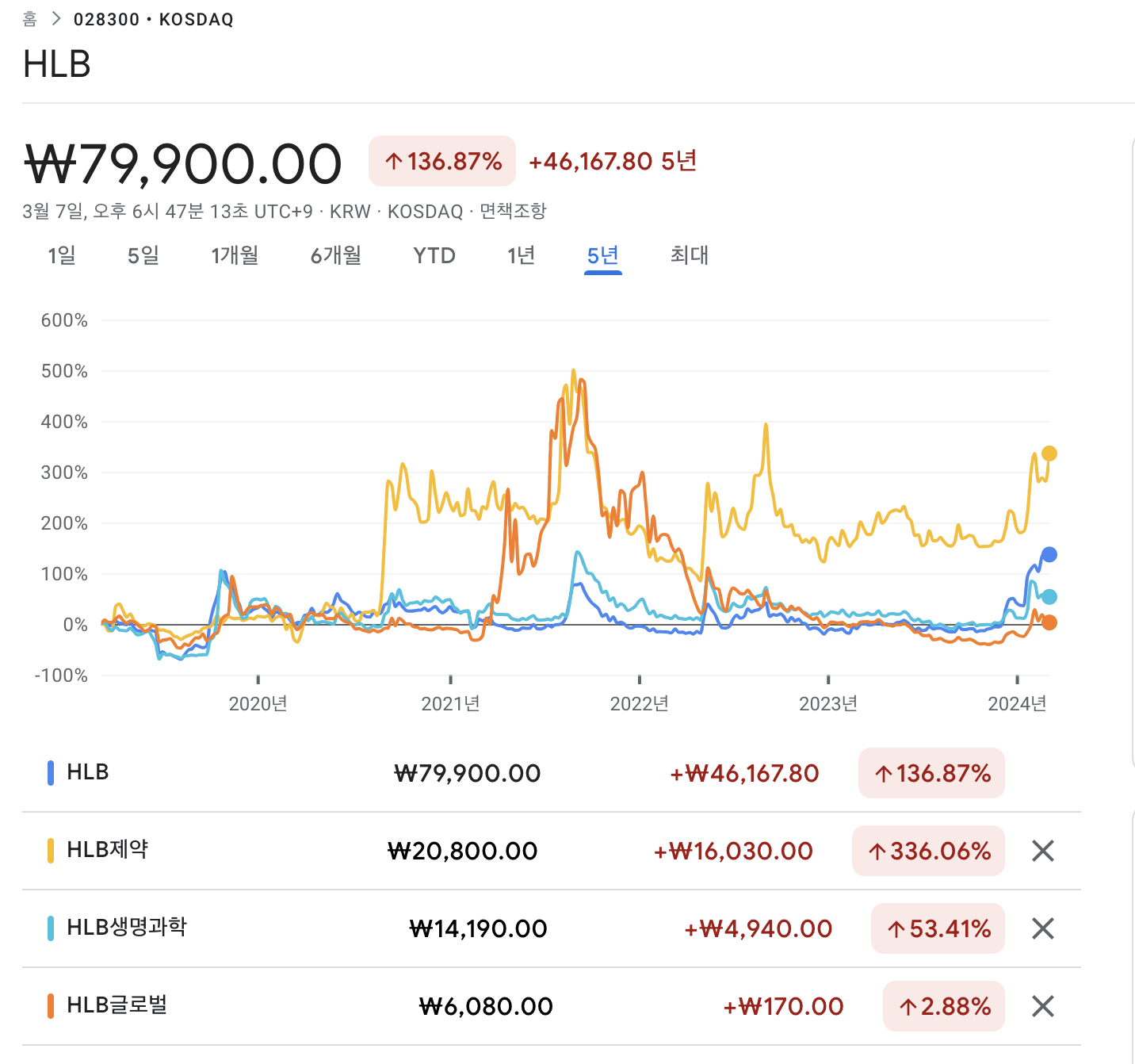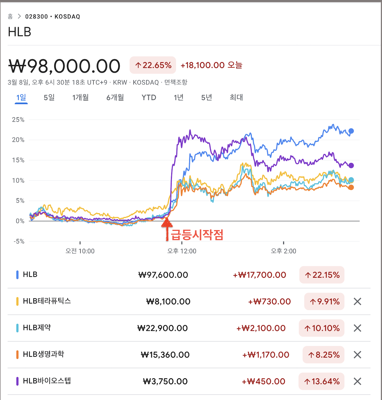 보고서 작성해서 올린 후, 외국 기관 매수가 들어와서 당일 하루만에 HLB 주가가 22.15% 상승했습니다. 이밖에 HLB관련 그룹주가 일제히 상승 마감했네요. FDA 승인 기대감은 계속 있어왔고, 아직 발표 일정 5월 16일까지 2달여 기간이 남았는데요. HLB 간암 신약, 미국 보험사 PBM ‘처방 예상목록’에 등재 완료 소식이 오늘 뉴스 기사를 타고 전해지면서 급등한 모양입니다. 무엇보다, 간암 치료제 FDA 허가 소식 기대감 속에서 국내 제약바이오 산업에 훈풍이 찾아온 듯한 반가운 소식입니다. 앞으로도 지속적인 상승 랠리가 이어질 지는 주식시장에서는 아무것도 단언해서는 안되기에 지켜보면서 면밀히 대응할 수 있도록 해야 겠습니다. 보고서를 작성한 입장에서는 관련주가 바로 상승한 소식이 들려와서 뿌듯하군요~