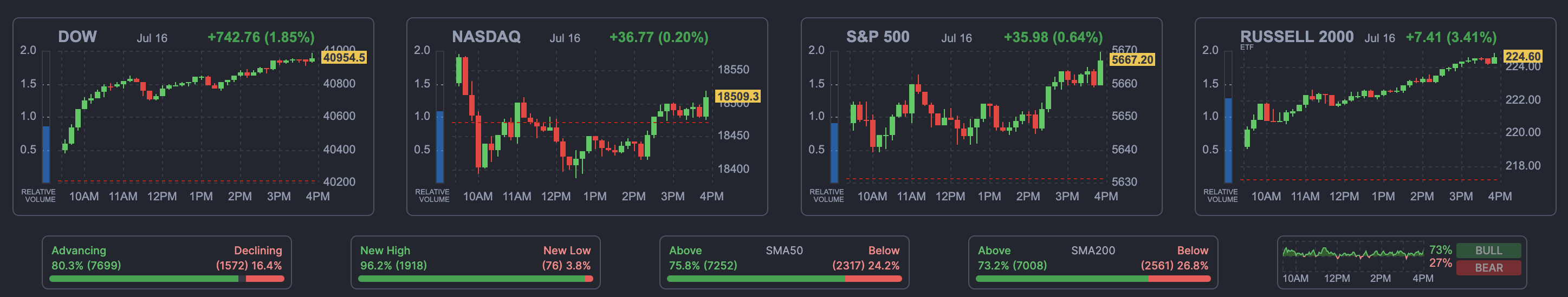 - 러셀 2000 지수와 다우존스 산업평균지수는 모두 강한 상승 추세를 보이고 있으며, 연방준비제도의 금리 인하 기대, 긍정적인 실적 보고, 및 경제 지표가 이끌고 있습니다.