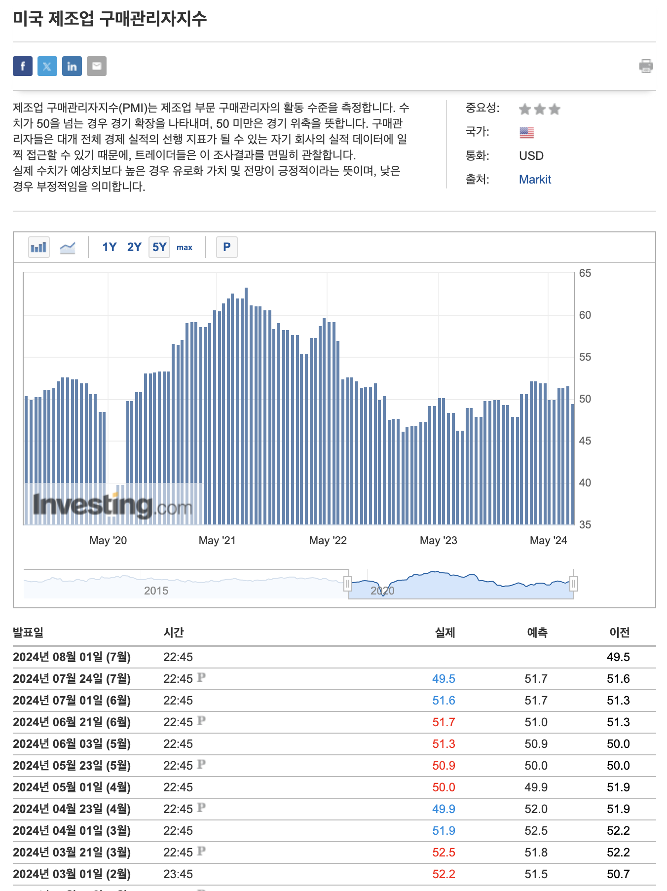 수요일 주식시장은 두 대형 기술 회사의 실망스러운 보고서로 인해 하락했으며, S&P 500 지수는 2022년 이후 최악의 날을 향해 가고 있습니다. 광범위한 시장 지수는 2.2% 하락했으며, 기술 중심의 나스닥 종합 지수는 3.5% 하락해 2024년 최악의 날을 맞고 있습니다. 다우존스 산업평균지수는 421포인트(1%) 하락했습니다. 구글 모회사 알파벳의 주가는 5% 하락하여 1월 31일 이후 최대 일일 하락률을 기록했습니다. 알파벳은 매출 및 순이익이 예상을 초과했지만, 유튜브 광고 수익이 예상치를 밑돌았습니다. 한편, 테슬라 주가는 11% 하락하여 1월 25일 이후 최악의 날을 기록했습니다. 테슬라는 예상보다 낮은 실적과 자동차 매출이 전년 대비 7% 감소한 것이 원인이었습니다. 다른 주요 기술주들도 알파벳과 테슬라와 함께 하락했습니다. 엔비디아와 메타 플랫폼스는 각각 6%와 5% 하락했으며, 마이크로소프트는 4% 하락했습니다. 이 보고서는 대형 기술 회사들이 2분기에 어떻게 실적을 기록했는지에 대한 첫 번째 시각을 제공하며, 월스트리트는 이 작은 그룹이 올해의 주요 상승 요인 중 하나였기 때문에 특별한 관심을 기울이고 있습니다. 수요일의 매도세는 과매수 시장, 높은 실적 기대치, 계절적으로 약한 주식 시장이라는 완벽한 폭풍에 의해 발생했습니다. 이는 투자자들에게 전혀 놀라운 일이 아니라고 Baird의 투자 전략가 Ross Mayfield는 말했습니다. "우리는 이번 매도를 결국 꽤 유효한 것으로 볼 것입니다. 왜냐하면 이는 강세 시장의 배경에서 발생했기 때문입니다. 강세 시장 내에서의 건강한 조정은 우리가 방어적으로 변하거나 변동성으로부터 돈을 보호하려는 것이 아니라 기회의 장소로 보는 것입니다."라고 Mayfield는 CNBC와의 인터뷰에서 말했습니다. 수요일 매도세 속에서 상대적으로 밝은 점은 Russell 2000 소형주 지수로, 하루 동안 1.5%만 하락했습니다. 월간으로는 8% 상승했으며, 최근 투자자들이 대형 기술주에서 소형주로 회전하기 시작한 결과입니다. 다우지수는 2% 상승한 반면, S&P 500은 0.4% 하락했으며 기술 중심의 나스닥은 거의 2% 하락했습니다. 대형 기술주의 실망에도 불구하고, 전체적인 실적 시즌은 강하게 시작되었습니다. S&P 500 기업 중 25% 이상이 2분기 실적을 발표했으며, 이 중 약 80%가 예상을 상회했다고 FactSet 데이터는 보여줍니다. 수요일 아침 투자자들의 우려를 더한 것은 예상보다 낮은 미국 제조업 데이터였습니다. 미국 PMI 플래시 제조업 생산 지수는 7월에 49.5로 하락하며 예기치 않게 수축 영역에 진입했습니다. 이는 새로운 주문, 생산 및 재고가 감소했기 때문입니다. 경제학자들은 51.5의 지수를 예상했습니다.