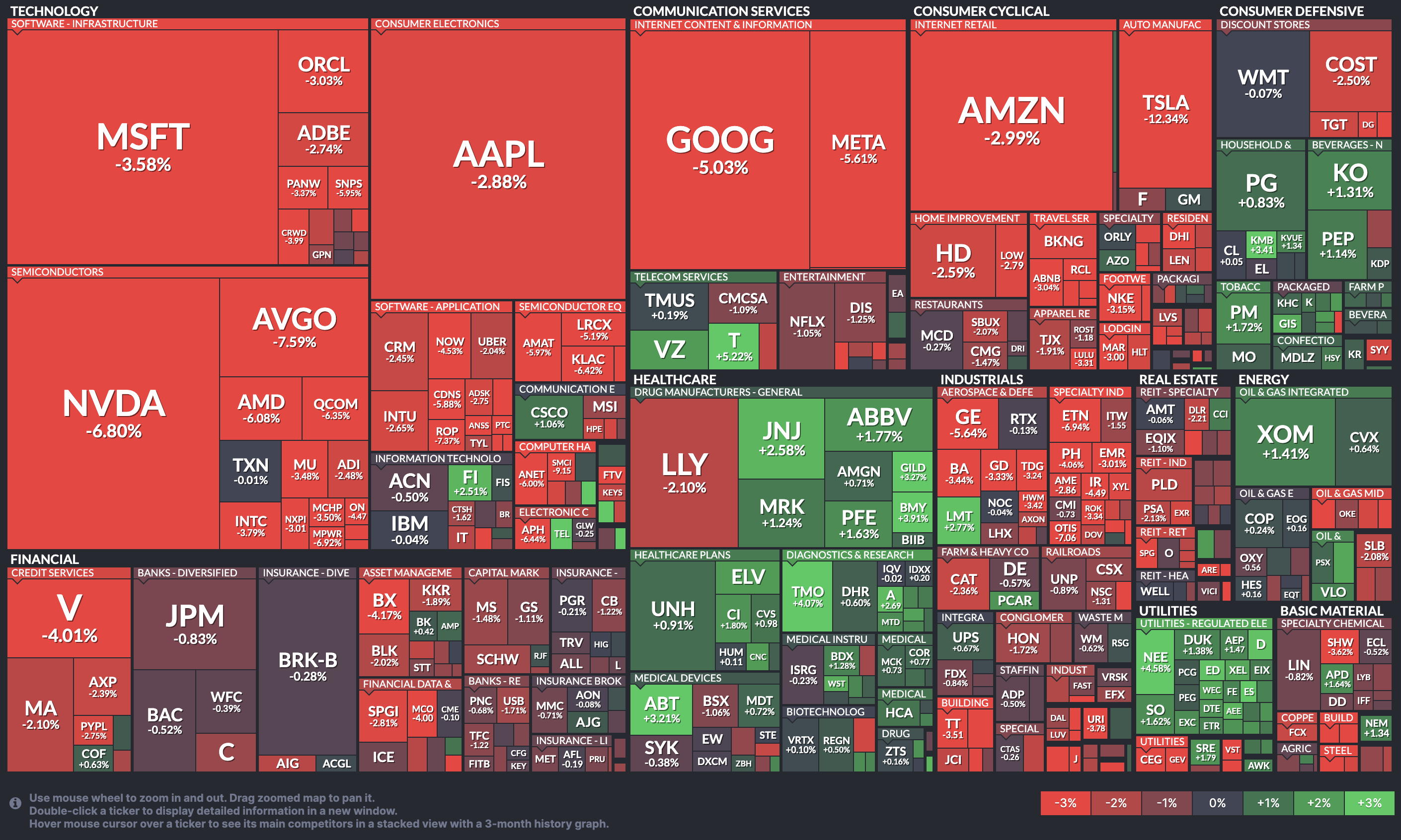 📰 경제뉴스 요약 🌈 투어하다 "S&P 500 및 나스닥, 테슬라와 알파벳의 실적 실망으로 2022년 이후 최악의 날 기록"