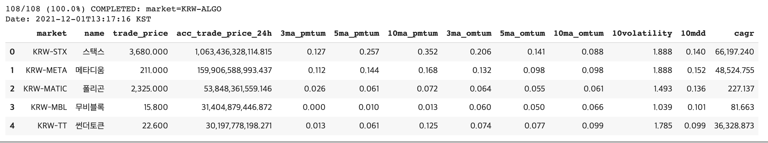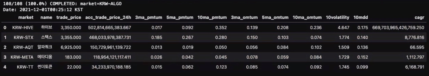 2021년 12월 1일 분석결과 5개의 종목이 추천되었다.