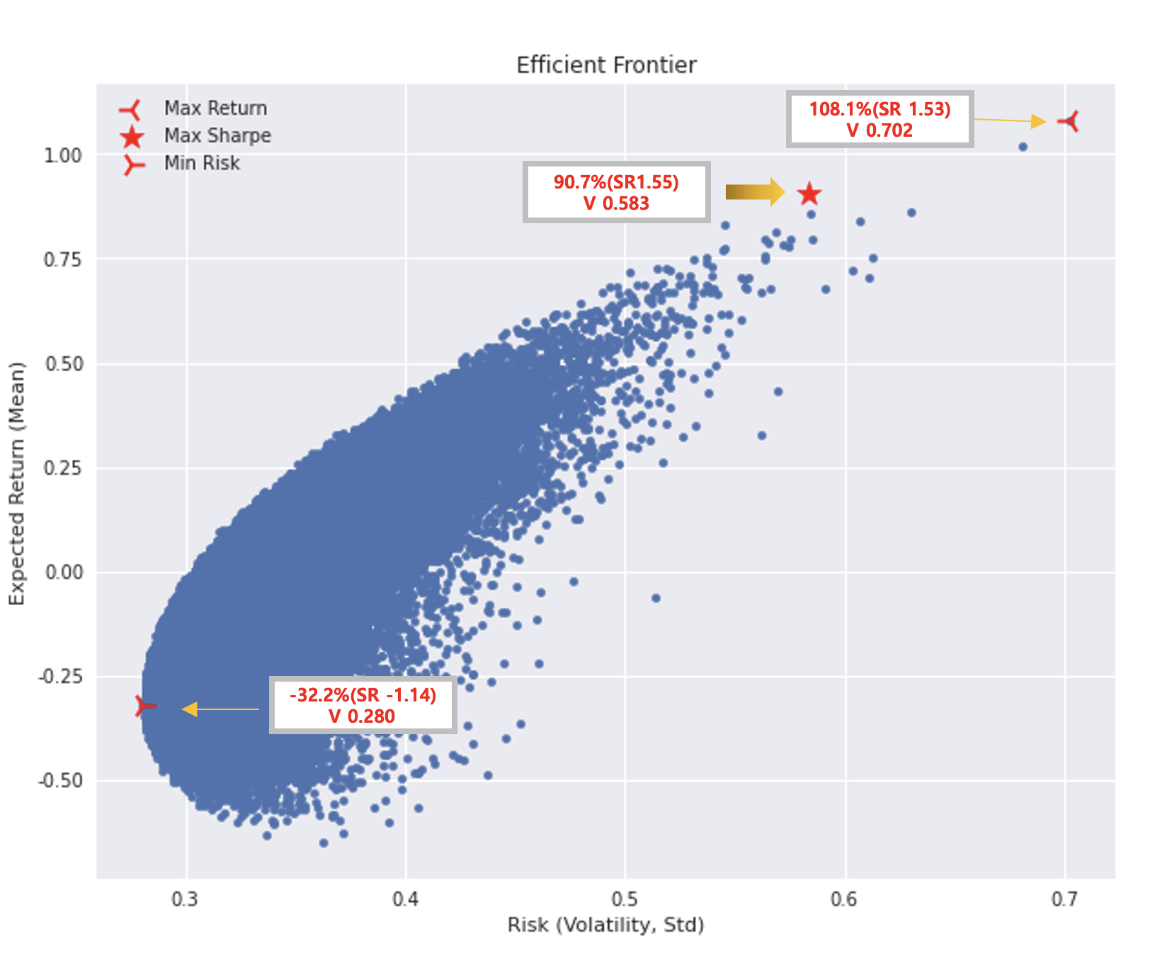 Efficient Frontier Portfolio 에 대하여 궁금하신 사항은 댓글로 남겨주시면 상세하게 설명드리겠습니다.