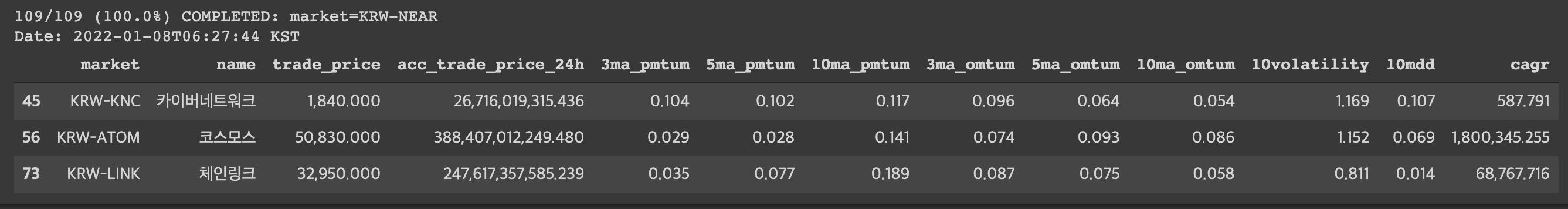 109/109 (100.0%) COMPLETED: market=KRW-NEAR