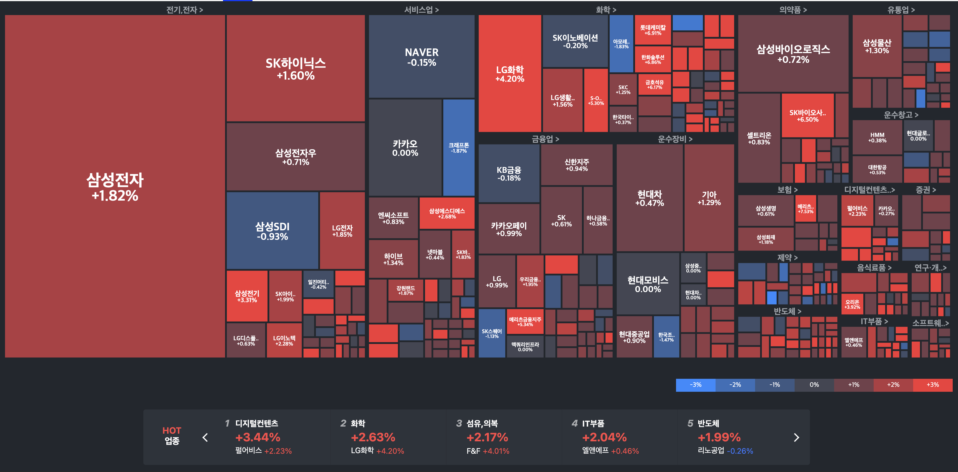 국내 인기있는 업종과 기업들에 대한 데이터 분석 이미지 자료이다.