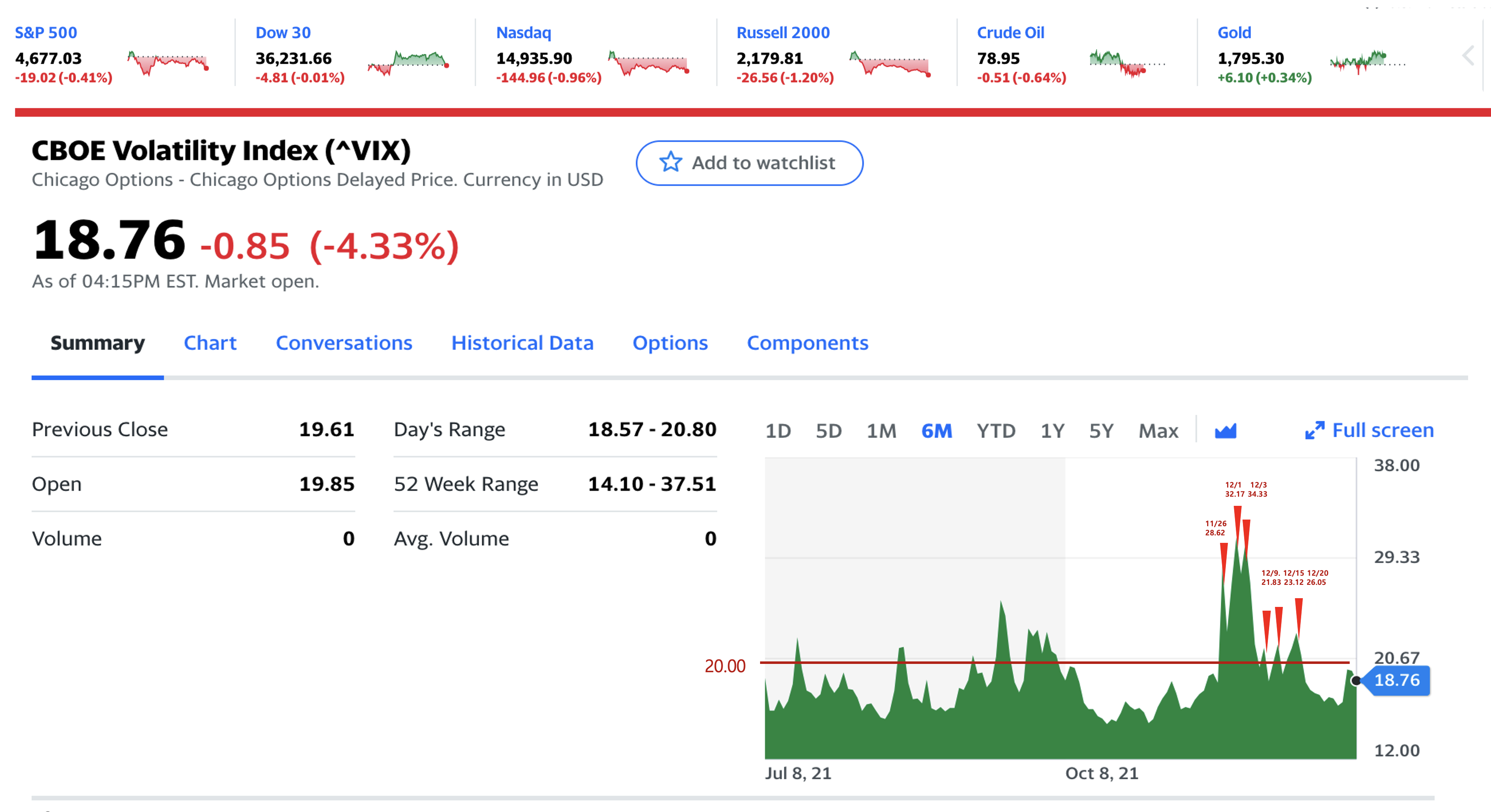 시카고 거래 옵션에서 변동성(Volatility Index)을 실시간으로 알려주는 지표로 공포지수로도 알려져있는데 이와 관련된 사항은 이전 글을 참고 하길 바란다.