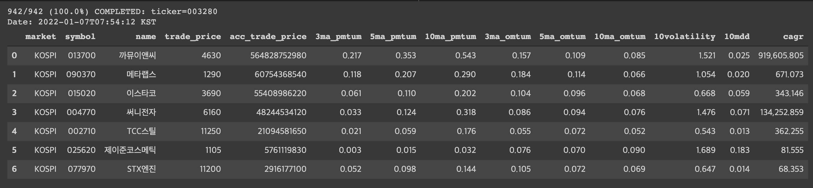 942/942 (100.0%) COMPLETED: ticker=003280