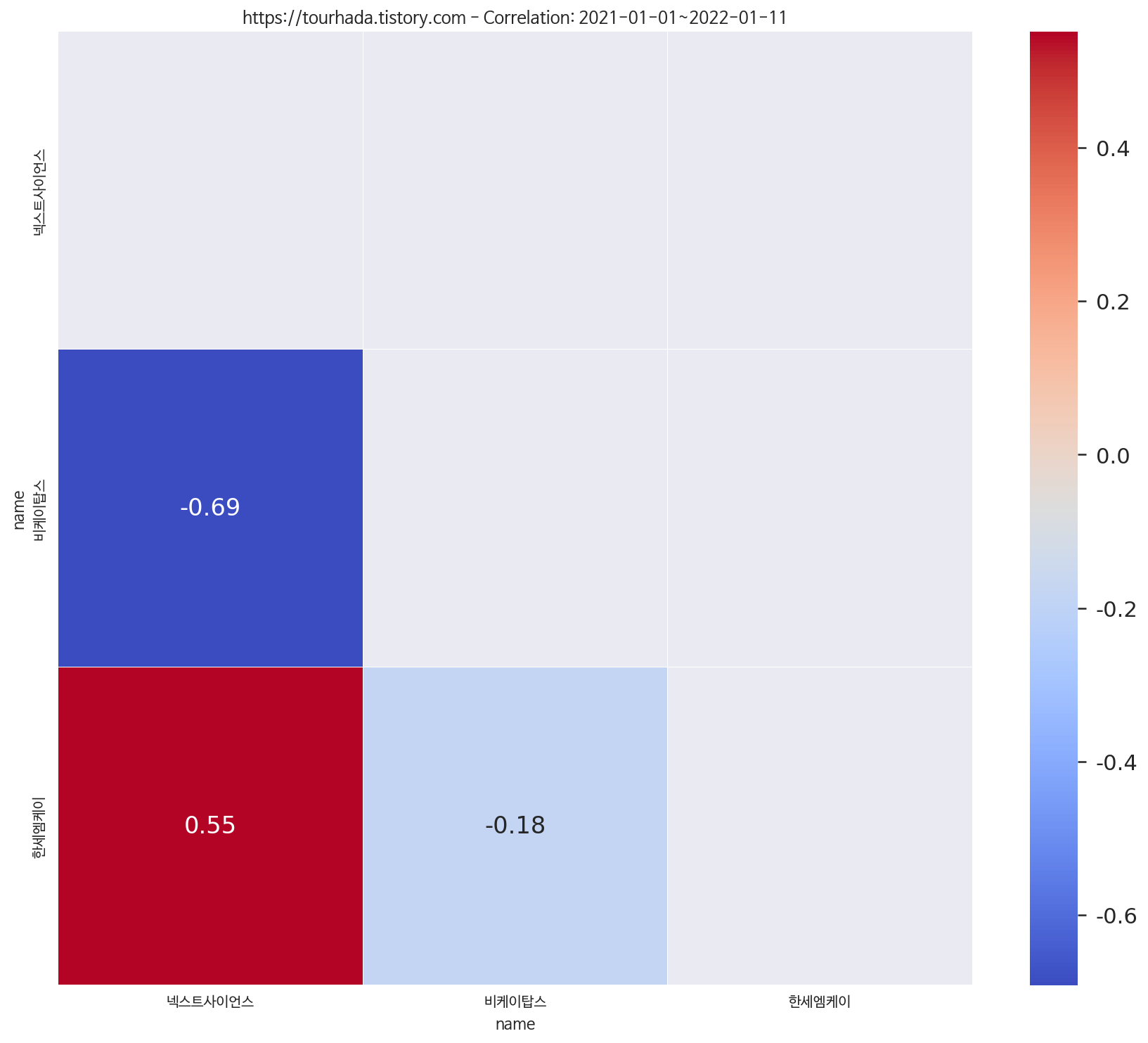>위 주식 종목 추천에서 상관 관계와 관련해서 궁금한 사항은 댓글이나 연락 남겨주시면 자세하게 설명드리겠습니다.