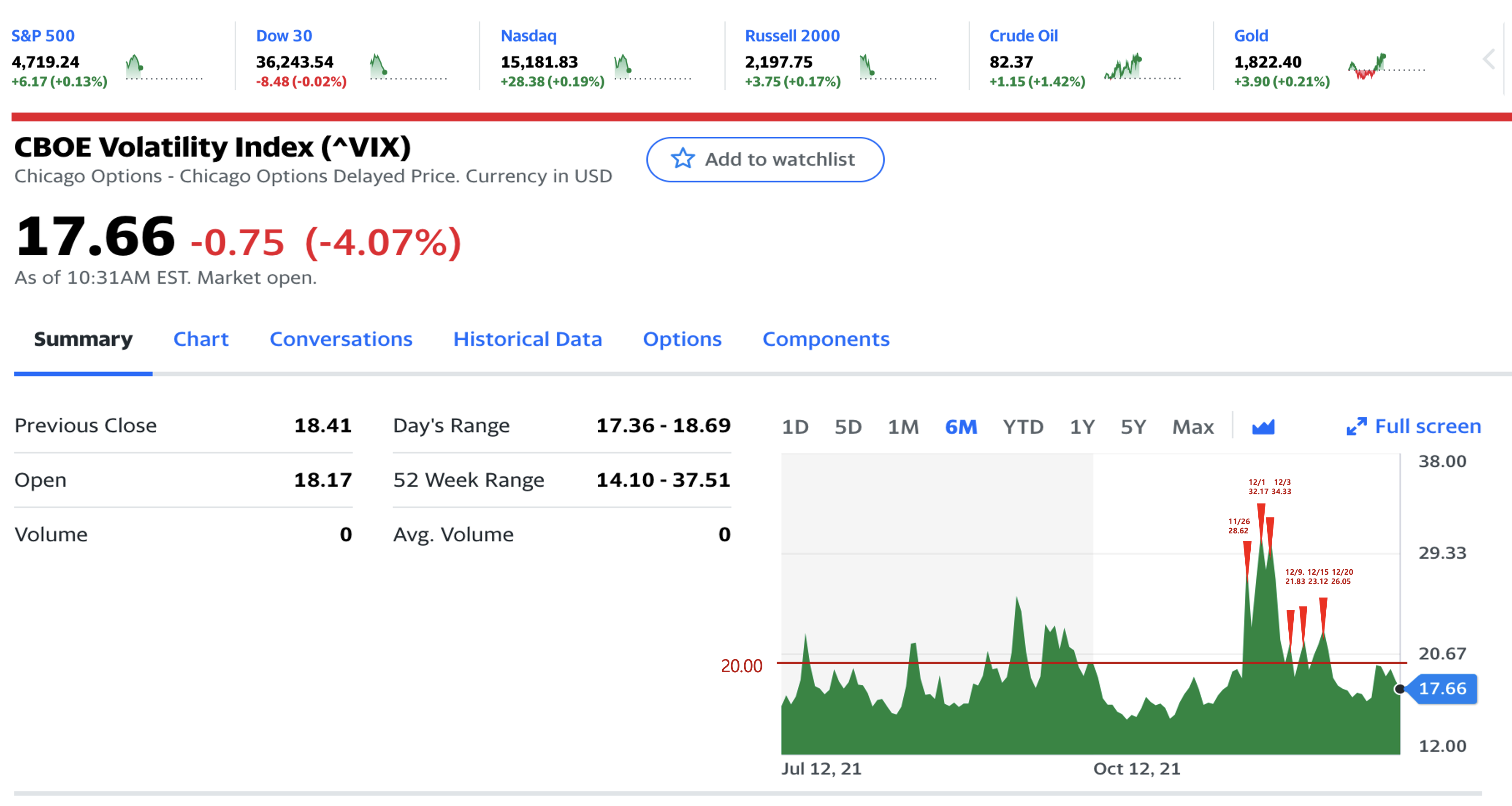 오늘 변동성 지수 (VIX 지수)에서는 적정 수치가 20이상이면 투자 적정시기가라고 하는데, 수치가 이전보다 내려서 17.66 이다.