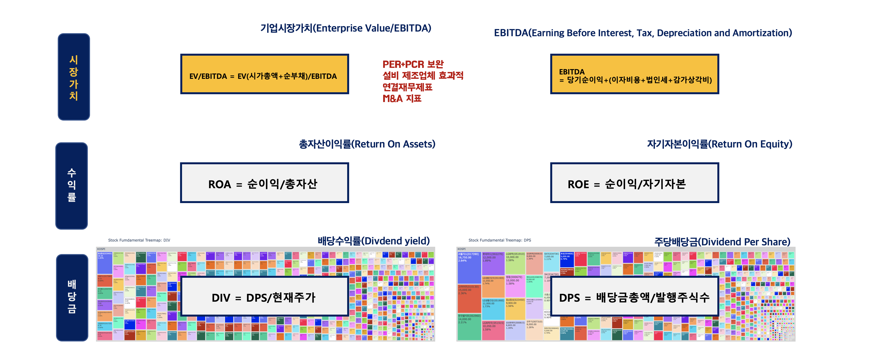 그다음에, 자기가 보유한 순수 자본에 따른 수익률을 보는 ROE(Return On Equity, 자기자본이익률)이 있고, 자신 보유한 자본 이외에 부채나 투자금을 포함한 수익률을 보는 ROA(Return On Assets, 총자산이익률)을 기간 구간별로 보는 시계열 자료를 확인해 보는 것이 앞으로 해당 기업이 얼마나 회사를 잘 운영하고 있는 확인 할 수 있는 지표가 되겠습니다.