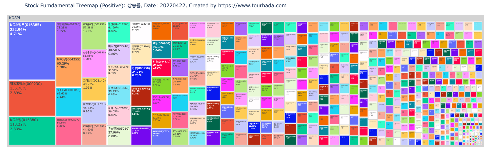 기업가치를 측정하는 지표는 재무제표상 여러가지가 쓰이고 있지만, 상승모멘텀와 시가총액 을 기준으로 실시간 현재(2022년 4월 22일) 상황을 체크해 보기로 했다.