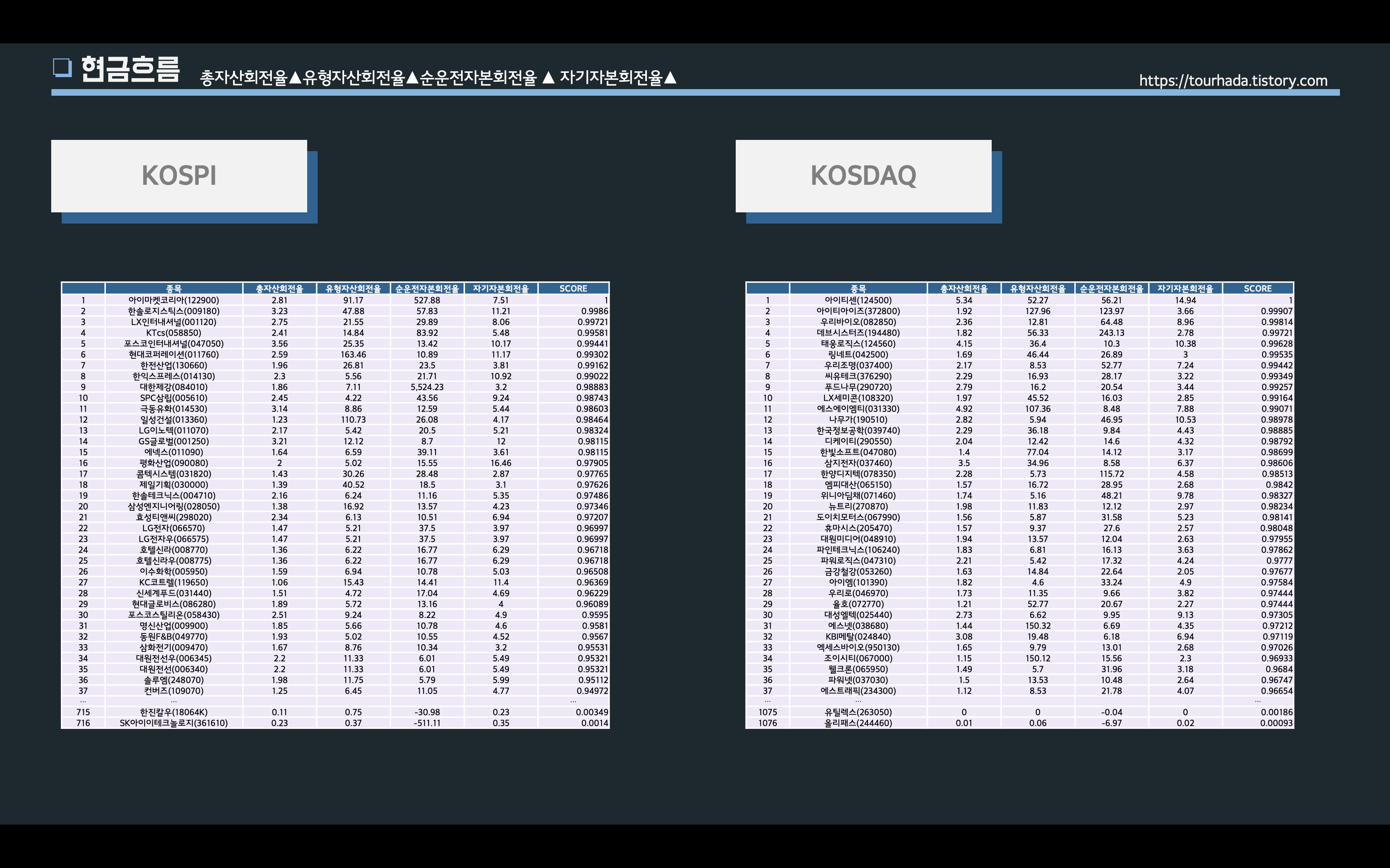 이것은 다시 말하면, "어떤기업이 현금흐름 창출능력이 좋은가 ?" 순위를 매겨보면 될 것이다.