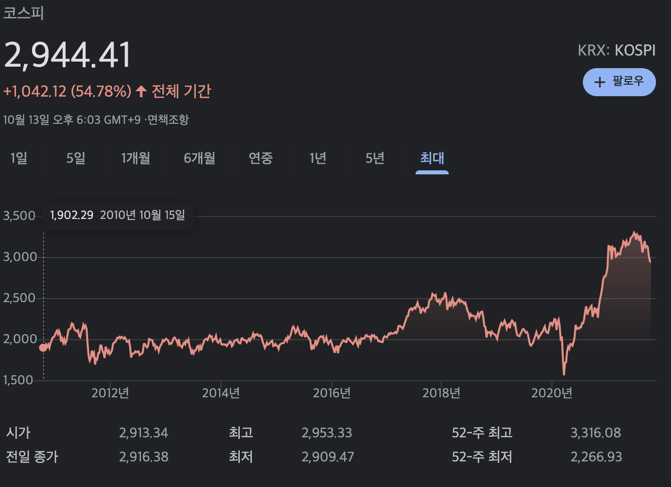 우리나라 주요 지수 (출처: KRX 한국거래소)